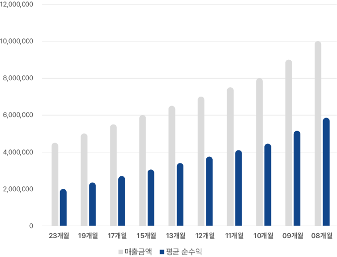 | 회수 기간 | 매출 금액 | 평균 순수익 |